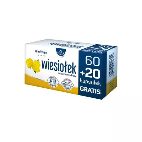 olej z nasion wiesiołka 1000 mg, w tym: 840 mg wielonienasyconych kwasów tłuszczowych, z czego 830 mg kwasów tłuszczowych omega-6, z czego 740 mg kwasu linolowego oraz 85 mg kwasu gamma-linolenowego, 6 mg ekwiwalentu alfa-tokoferolu – witaminy E (50%**), 200 µg witaminy A (25%**). Dzienna porcja dla dorosłych (4 kapsułki) zawiera: